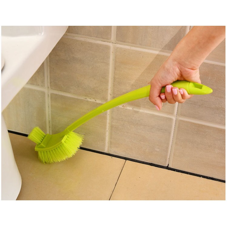 - Lông bàn chải được thiết kế dài và cứng để có thể cọ sâu vào mép trong bồn cầu hay bồn rửa mặt.