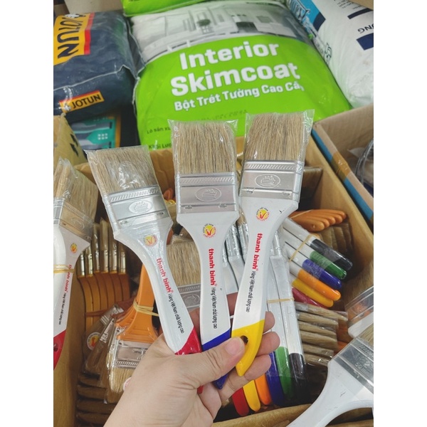 Cách sử dụng cọ quét sơn Thanh Bình như thế nào?Nhúng một nửa của phần lông chổi, ấn chổi nhẹ nhàng vào cạnh của thùng sơn để gạt bỏ sơn thừa