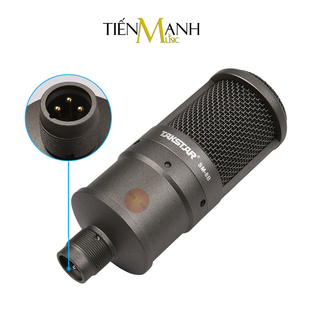 - Micro thu âm Takstar SM-8B với dải tần số đáp ứng âm thanh từ 30Hz-20kHz, khả năng xử lý âm thanh có áp suất cao rất tốt, có thể thu âm cả một số loại nhạc cụ thông dụng khác. Micro thu âm Takstar SM-8B có màng thu lớn và sử dụng nguồn Phantom 48V, có thể kết nối với máy tính.
