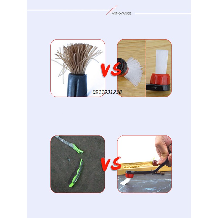 Đầu lông chải được nối với thân bằng khớp ren, có thể tháo lắp dễ dàng để thay thế khi bị mòn