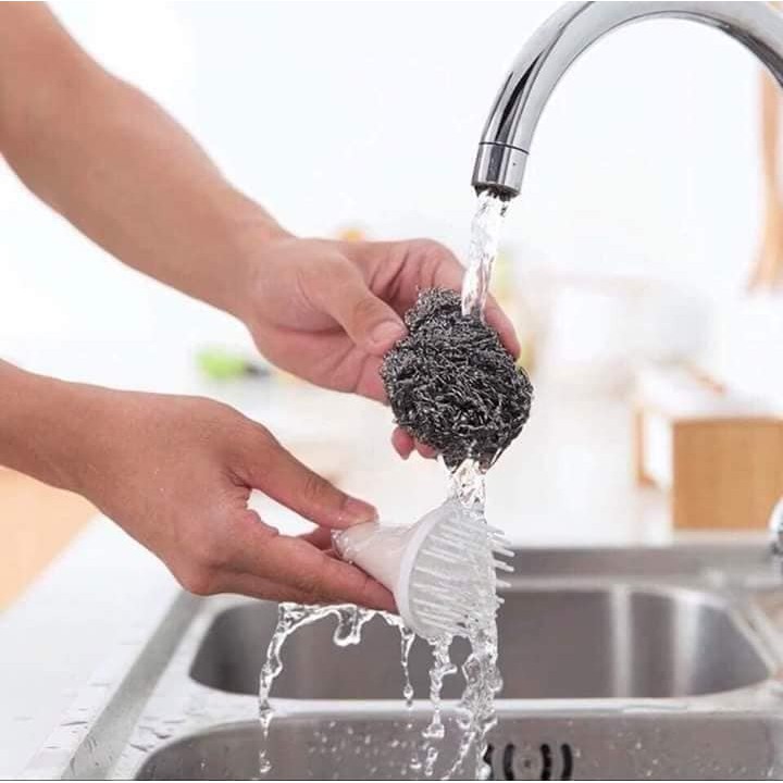 🍀Búi thép cọ nồi có núm cầm được thiết kế đầu cọ là những sợi inox, không gỉ, có tay cầm hạn chế xước, đứt tay khi sử dụng. Phần cọ sắt dễ tháo lắp, thay thế.