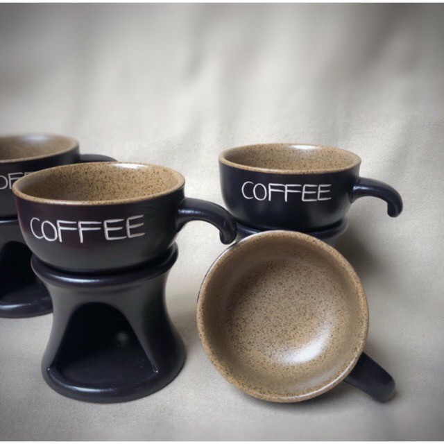 Bộ Cốc cà phê và chân bếp hâm nóng uống cà phê mùa đông - Bát tràng - 3C Roastery