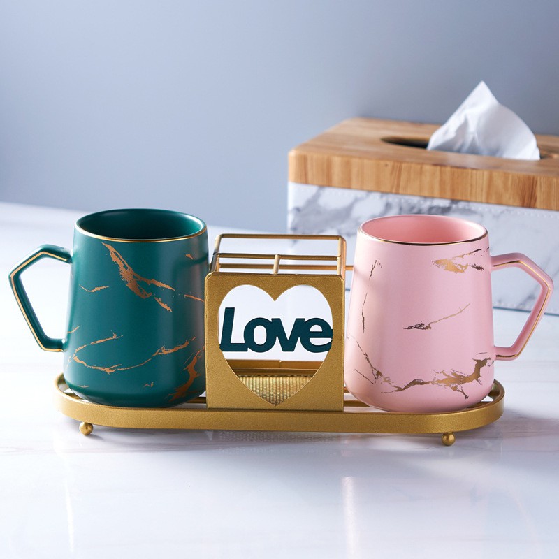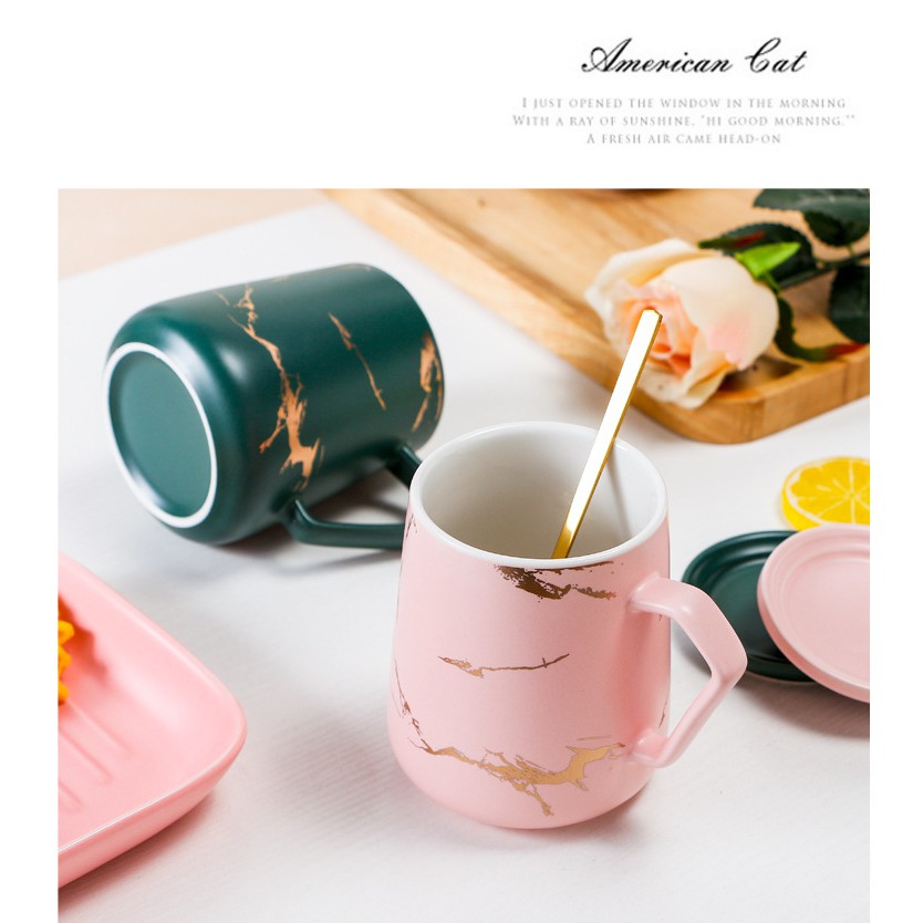 Vân đá cẩm thạch cực kỳ nổi bật trên nền men sứ bóng của cốc.