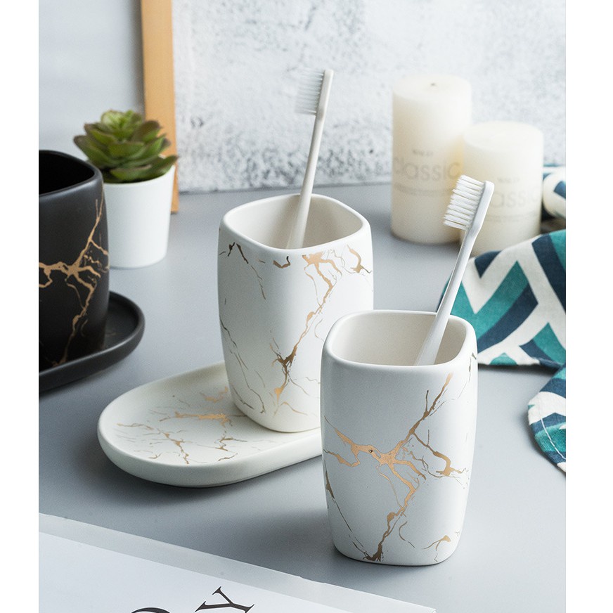 Bộ Cốc Đánh Răng Sang Trọng , Cốc Để Bàn Chải Đánh Răng Bằng Sứ Hoa Văn Cẩm Thach Cao Cấp ( Ko Kèm Khay)