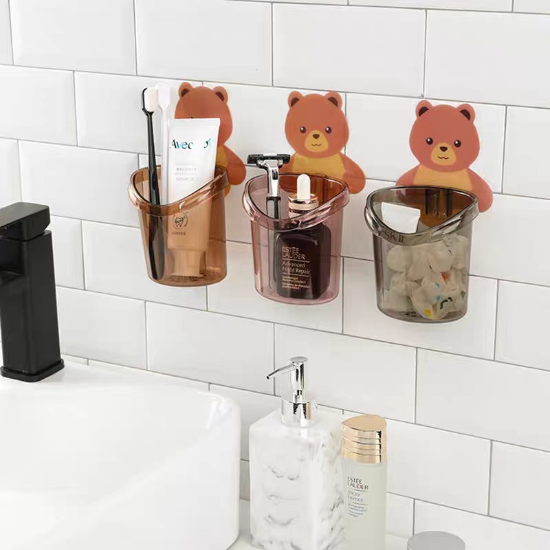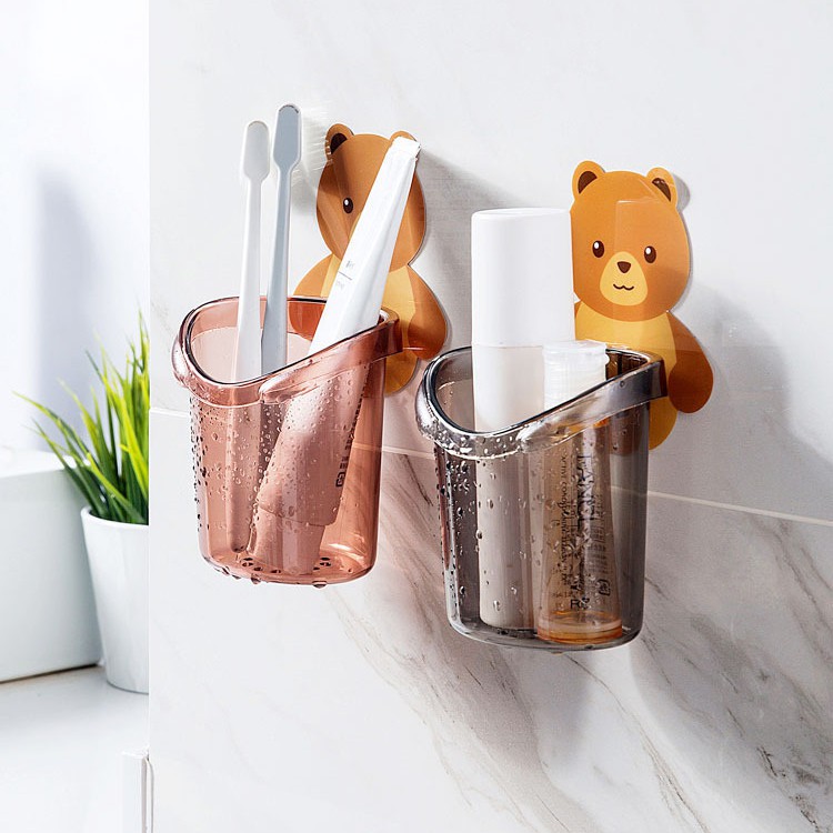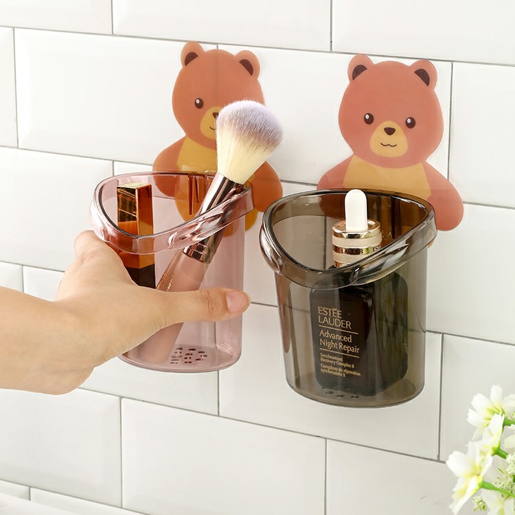 Cốc đựng bàn chải kem đánh răng dán tường hình gấu