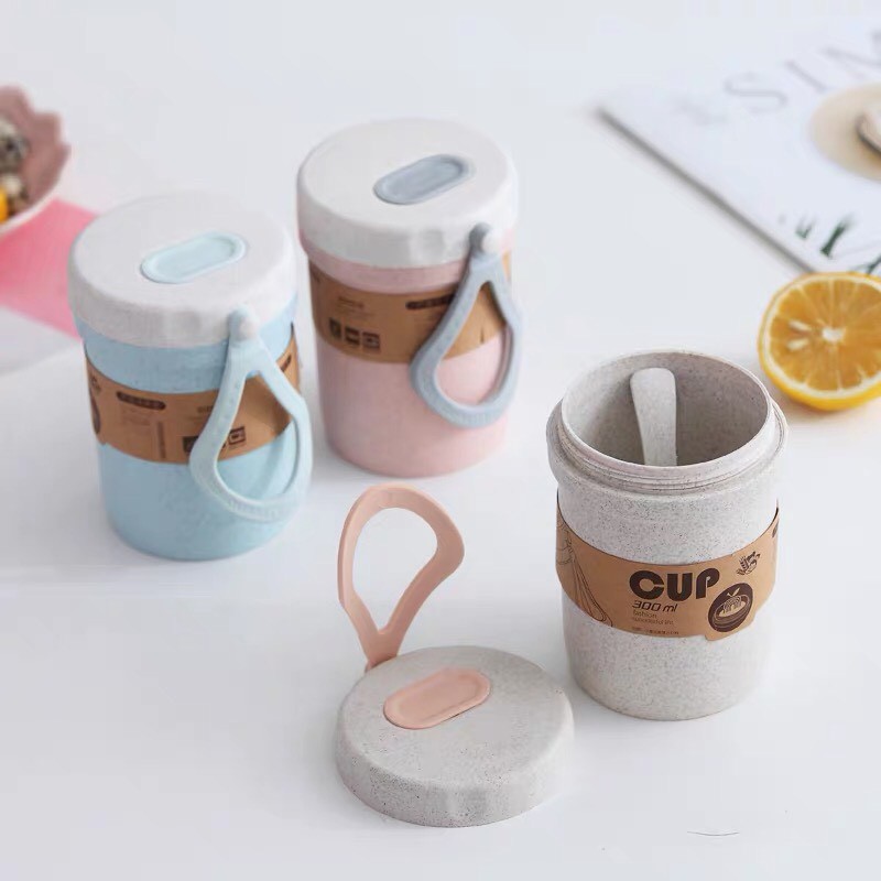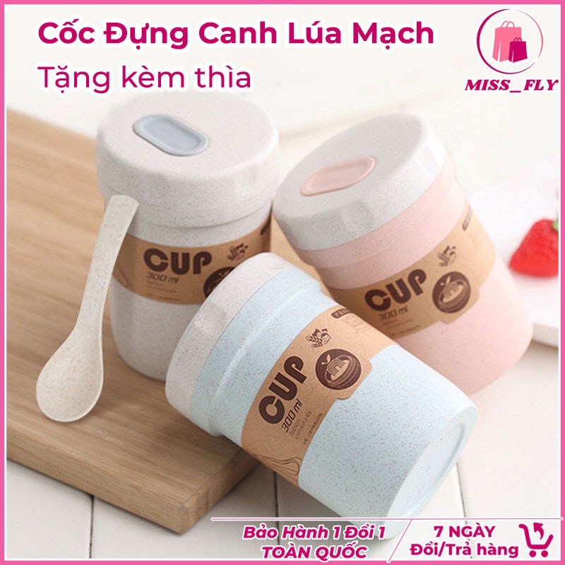 Cốc đựng canh lúa mạch an toàn cho sức khỏe, chịu nhiệt cao xinh xắn dung tích 300ML Tặng kèm thìa - missfly