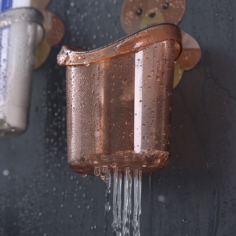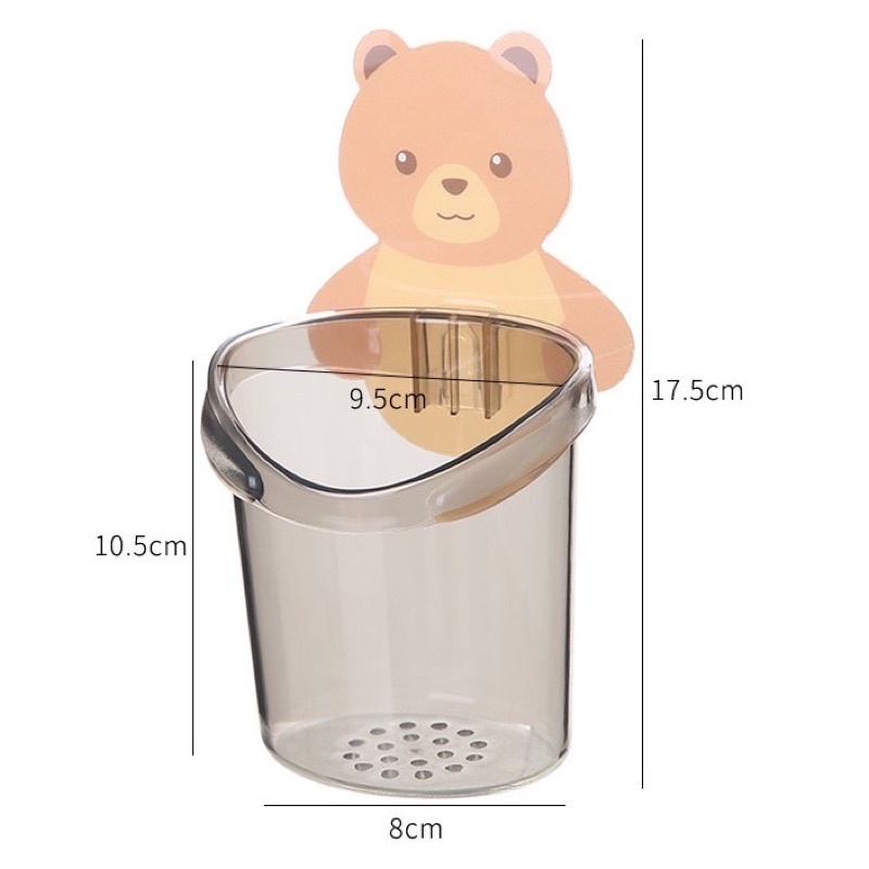 Cốc Gấu Dán Đựng Đồ Đa Năng, Đựng Bàn Chải Đánh Răng Có Lỗ Thoát Nước, Đựng Lược, Bút Viết, Cọ Mỹ Phẩm,Vật Dụng Cá Nhân