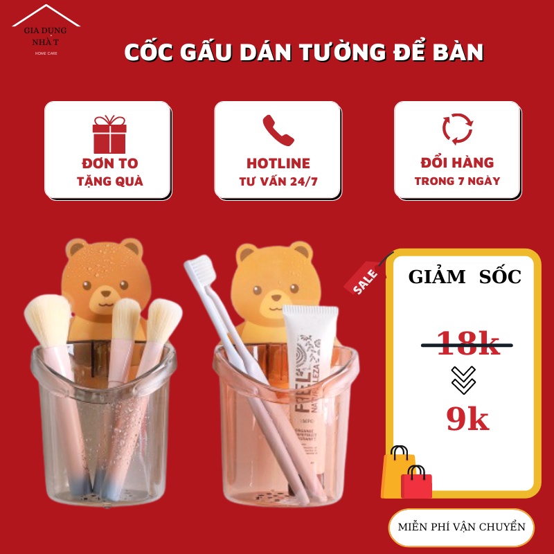 Nhà cửa & Đời sống > Đồ dùng phòng tắm > Kệ đựng bàn chải, kệ nhả kem đánh răng || Cốc Gấu Dán Tường Để Bàn Chải Đánh Răng Hình Gấu Có Lỗ Thoát Nước Tiện LợiCòn hàng