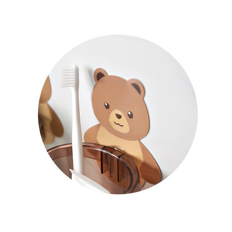 Cốc gấu dán tường đựng bàn chải đánh răng, cốc gấu nâu đựng kem đánh răng