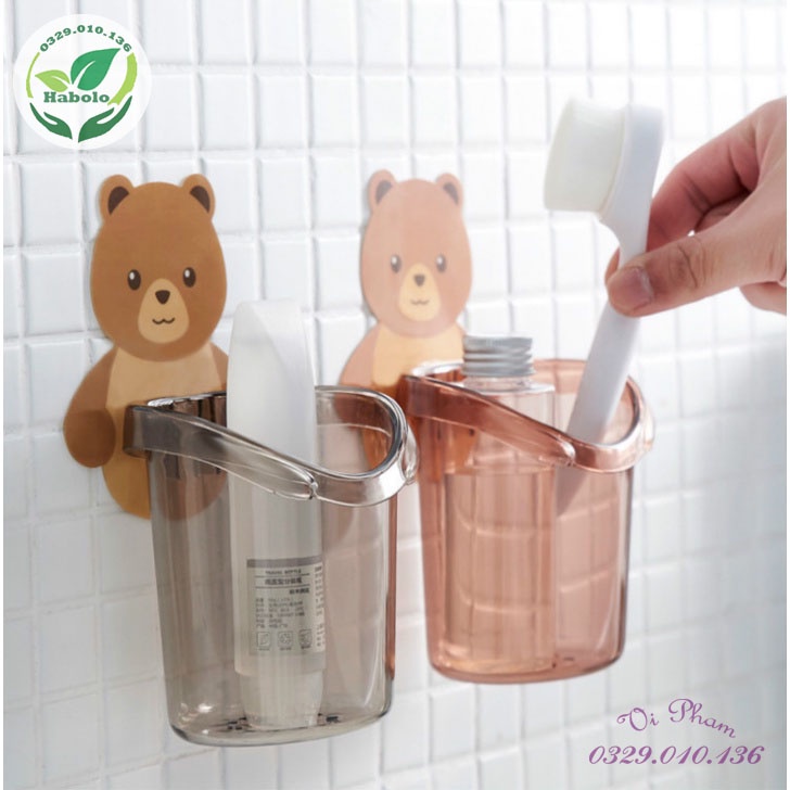 Cốc Gấu Dán Tường Đựng Bàn Chải Kem Đánh Răng Kệ Nhà Tắm Kệ Nhà Bếp Đựng Mỹ Phẩm Treo Tường.