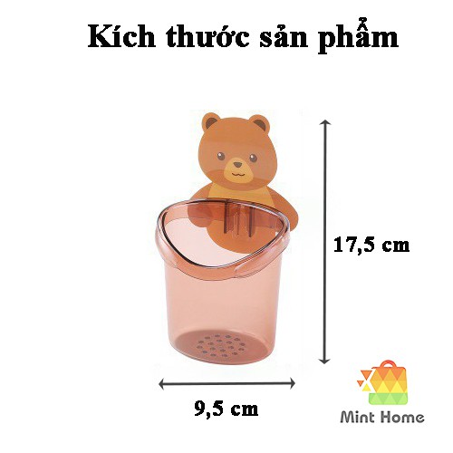Cốc gấu đựng bàn chải đánh răng điện cho bé, giá ly để cắm kem đánh răng dán gắn tường hình gấu dễ thương