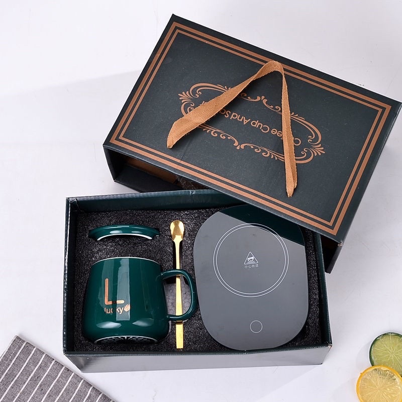 Chất liệu : sứ cao cấpGồm : 1 cốc + 1 nắp + 1 thìa inox mạ vàng + 1 đế hâm nóng. ( Kèm hộp có xốp đệm và túi xách sang trọng đi kèm ) . Đây là một sản phẩm vô cùng hữu dụng với giới văn phòng, các bạn trẻ học sinh, sinh viên, các mẹ bỉm sữa, Những người hay thích uống đồ nóng, đồ ấm nóng hoặc để hâm nóng sữa cho bé .
