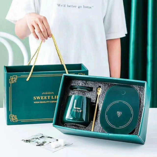 Cốc hâm nóng đồ uống kèm đế điện, Tặng kèm thìa mạ vàng sang trọng