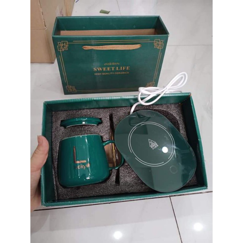 ☕☕BỘ MÁY HÂM NÓNG SỮA ĐỒ UỐNG TIỆN LỢI KÈM CỐC SỨ LUCKY - PHONG CÁCH HOÀNG GIA SIÊU