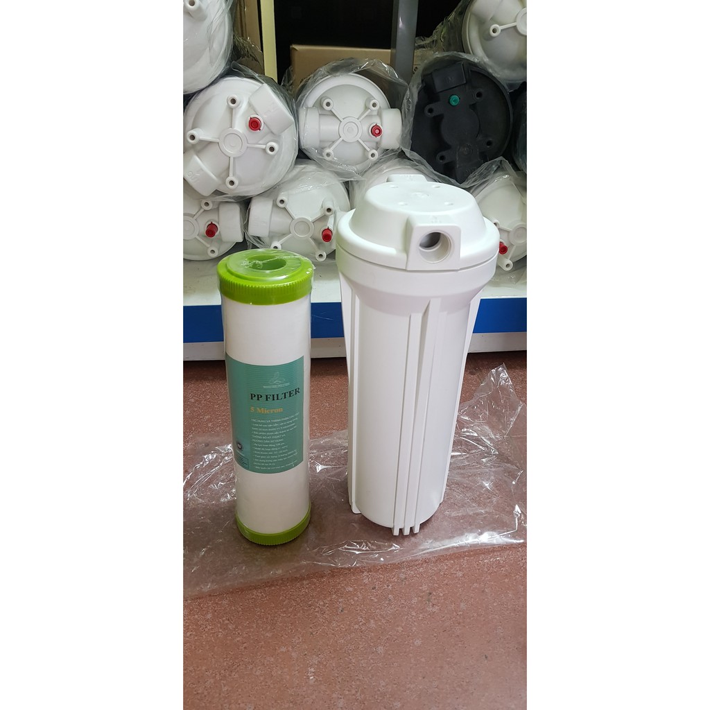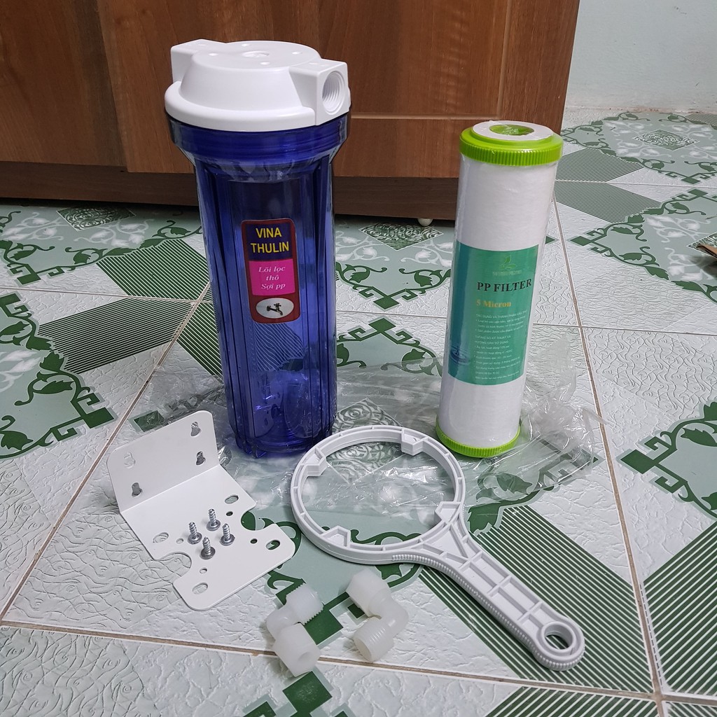 Có thể chọn lấy đủ bộ cốc gồm: cốc lọc 10inch ren 21, tay vặn, lõi PP 10inch 5 micron, giá treo, vít bắt, cút ren ống dây 10.