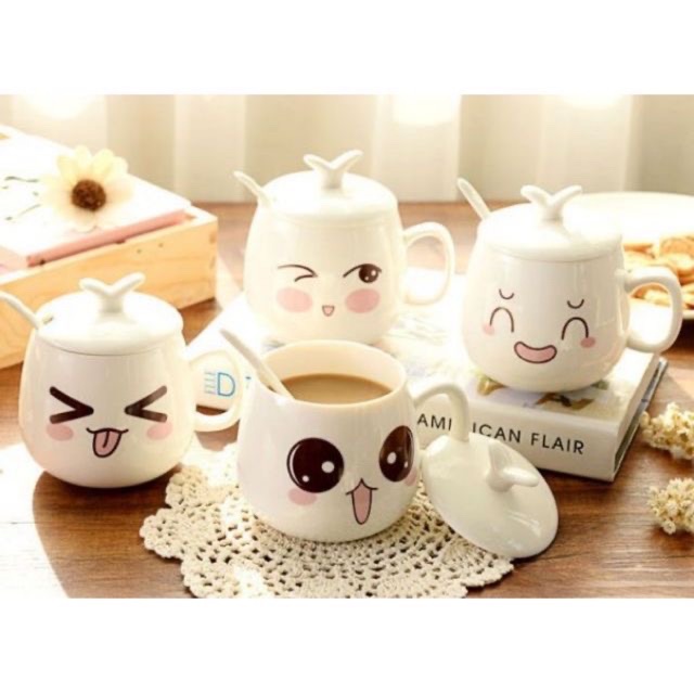 Cốc Mặt Cười Uống Trà , Cà Phê Kèm Thìa + Nắp