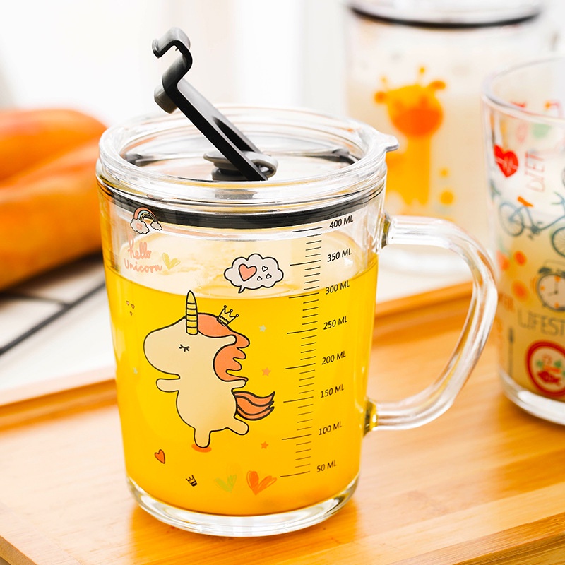 Cốc Pha Sữa Thủy Tinh Chia Vạch Siêu Tiện Lợi Có Nắp Và Ống Hút Cho Bé Dễ Dàng Vệ Sinh