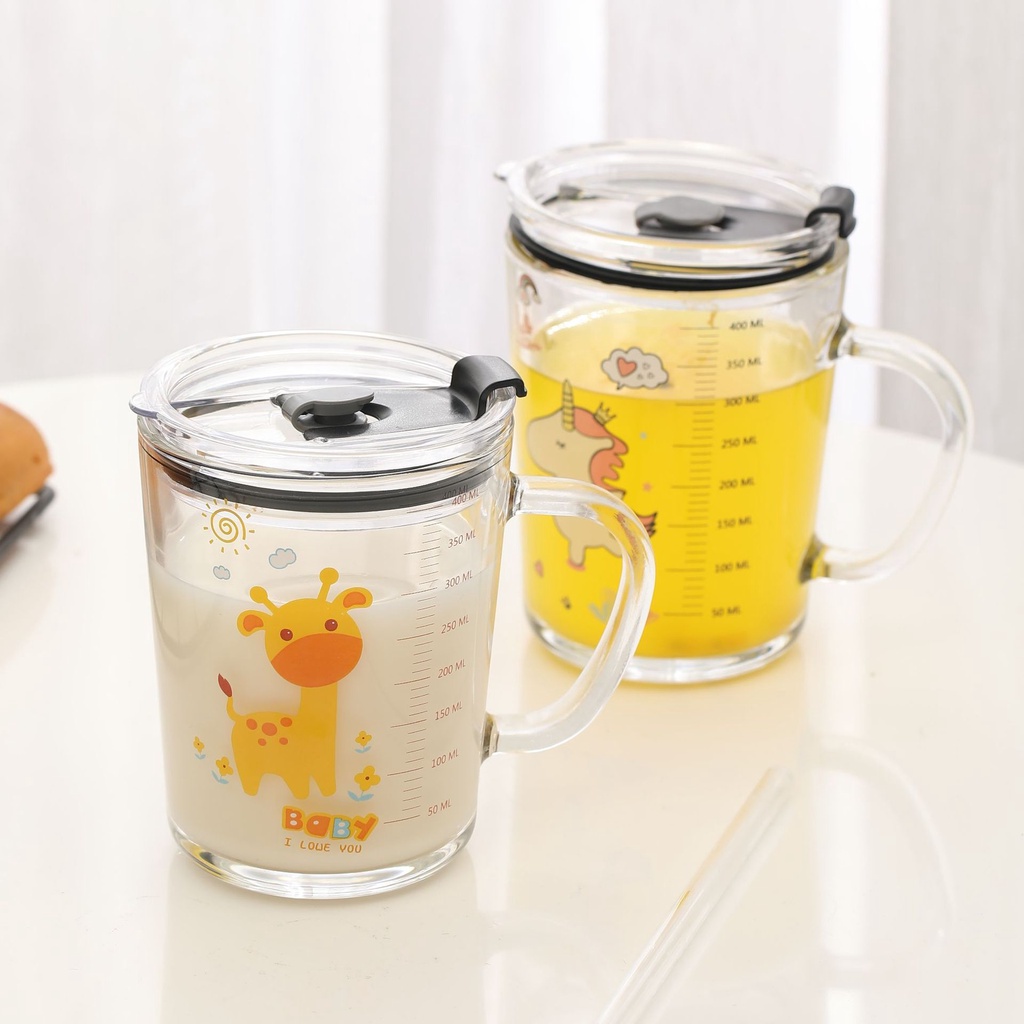 Giới thiệu Cốc Pha Sữa Thủy Tinh Chia Vạch Siêu Tiện Lợi Có Nắp Và Ống Hút Cho Bé Dễ Dàng Vệ Sinh