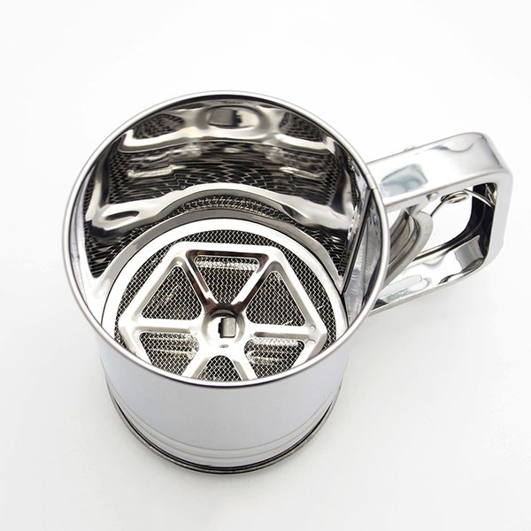 – Lưới rây đều thoáng, cốc có que gạt giúp bạn rây nhanh và bột mịn hơn.