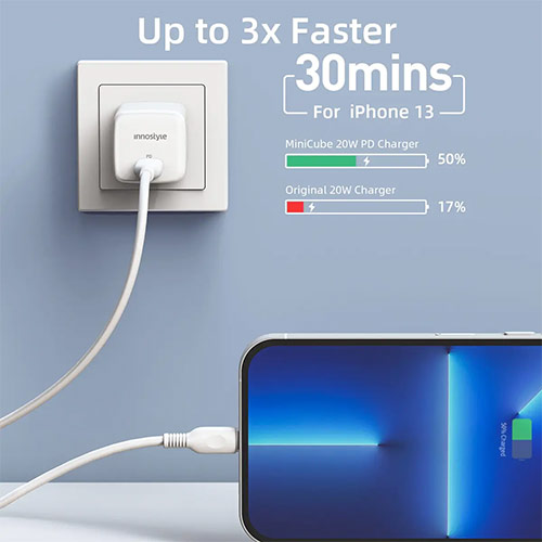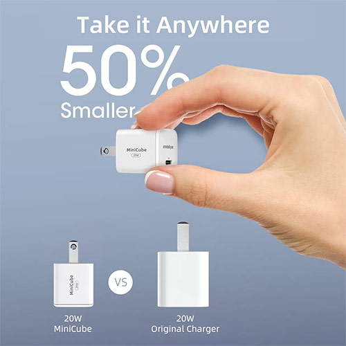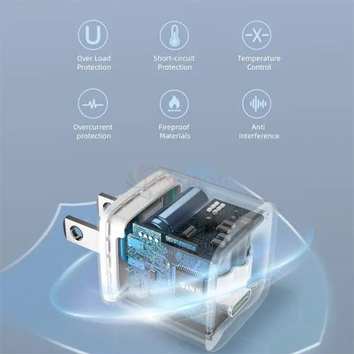 - Thiết kế nhỏ gọn: nhỏ hơn 50% so với củ sạc 20W thông thường
