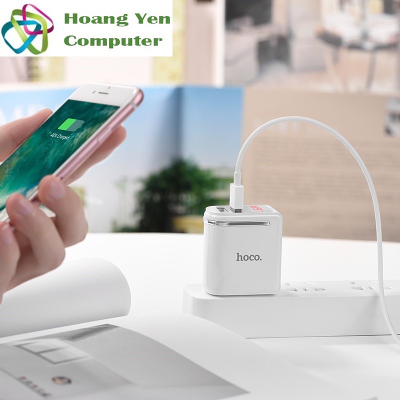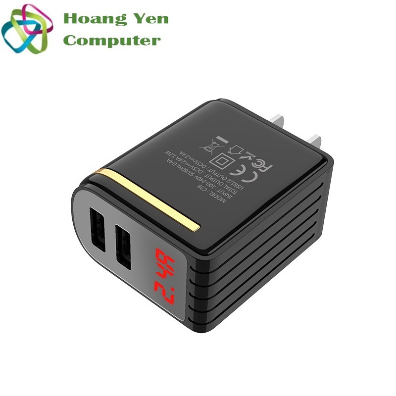 Cốc Sạc Mini 2 Cổng Hoco C39 2.4A, Màn Hình Hiển Thị - BH 1 Năm Chính Hãng - Hoàng Yến Computer