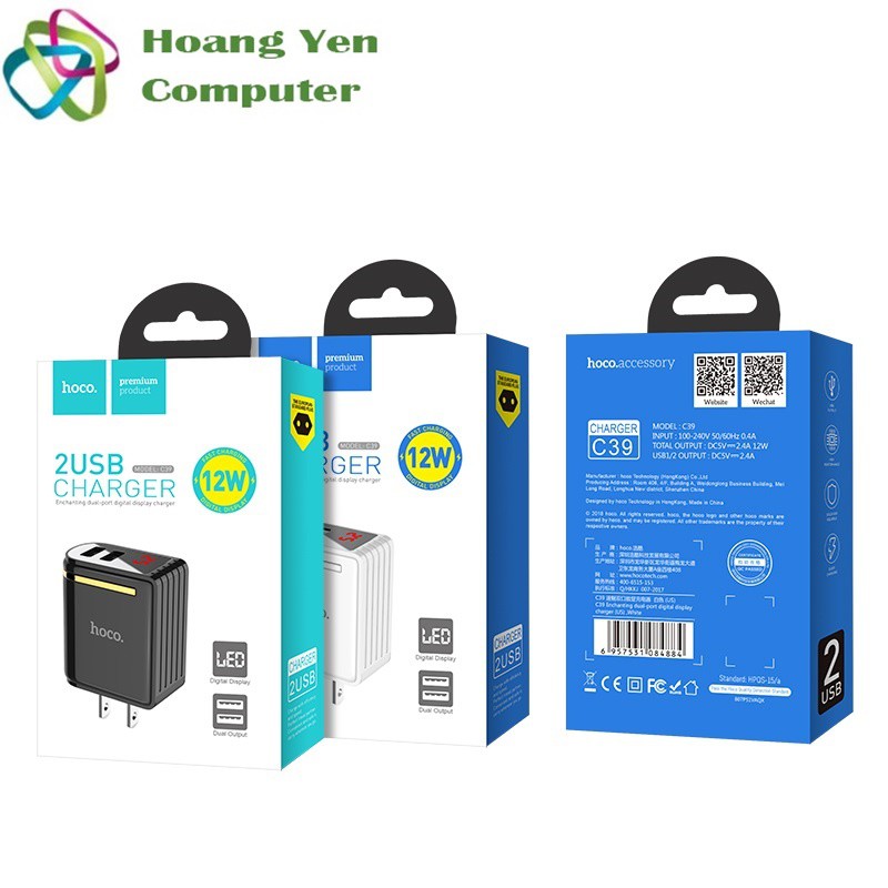 Giới thiệu Cốc Sạc Mini 2 Cổng Hoco C39 2.4A, Màn Hình Hiển Thị - BH 1 Năm Chính Hãng - Hoàng Yến Computer