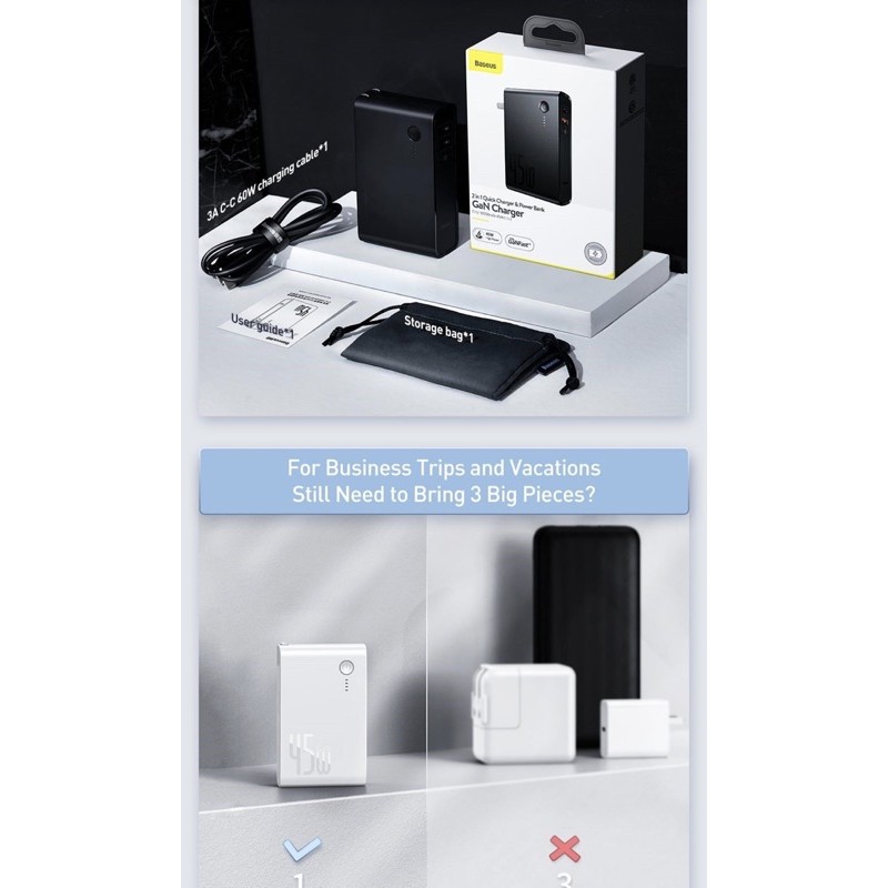 Cốc sạc nhanh kiêm pin sạc dự phòng Baseus GaN Power Station 45W PD / QC3.0 , Sạc Macbook , Note 20 , IPhone 12 ProMax