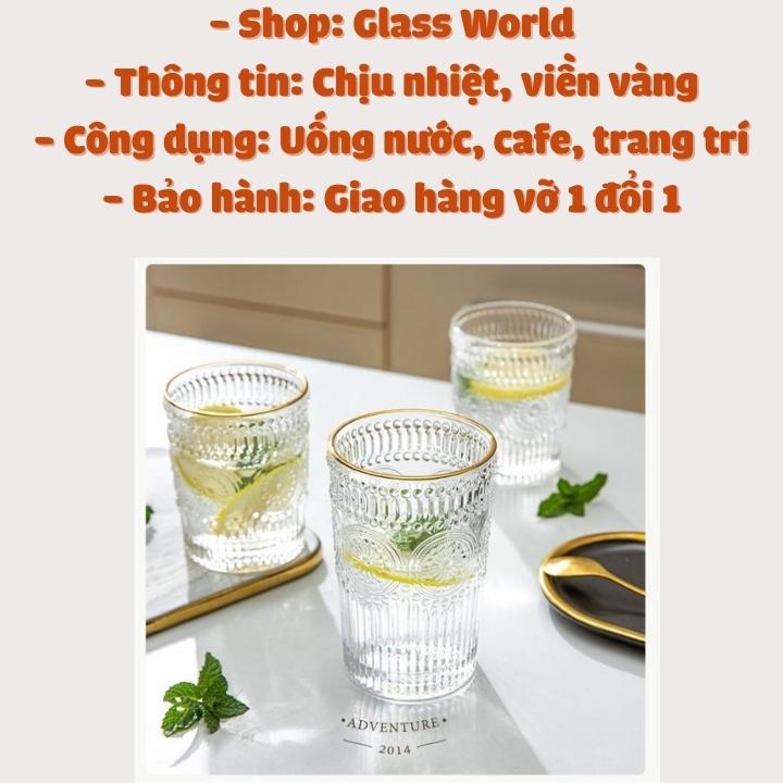 Cốc thủy tinh VINTAGE 300-400ML viền mạ vàng - Cao Cấp chịu nhiệt sử dụng rượu mạnh cafe bày bàn [ RẺ VÔ ĐỊCH ]