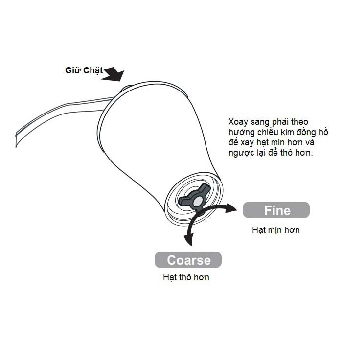 ** Lưu ý không được xoay ngược chiều kim đồng hồ, không xay hạt quá thô cứng gây hư và vỡ trục nghiền hạt cà phê
