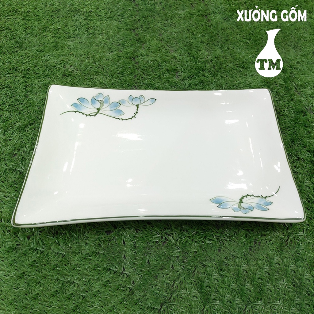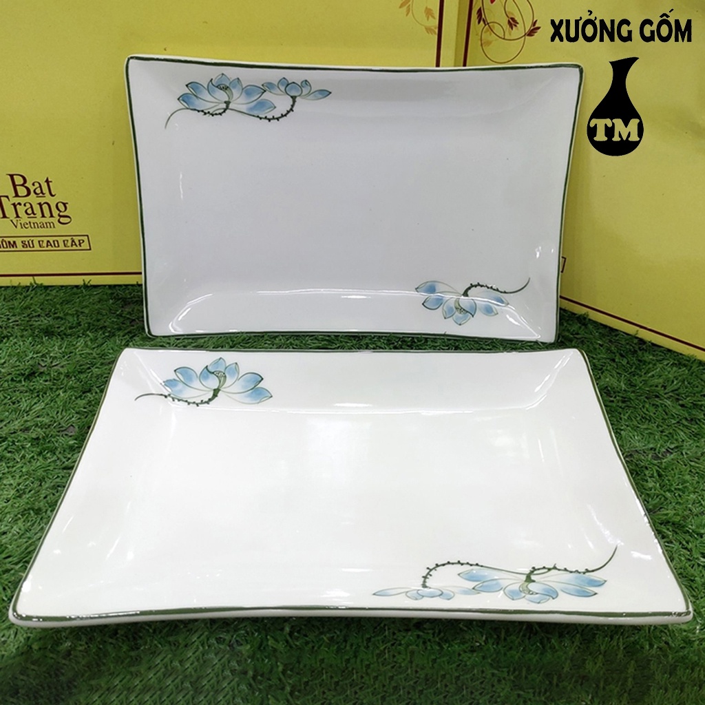 Combo 02 Đĩa Gốm Đựng Thực Phẩm Đĩa Ăn Sứ Hình Chữ Nhật Chất Lượng Cao Cấp Xưởng Gốm TM Bát Tràng
