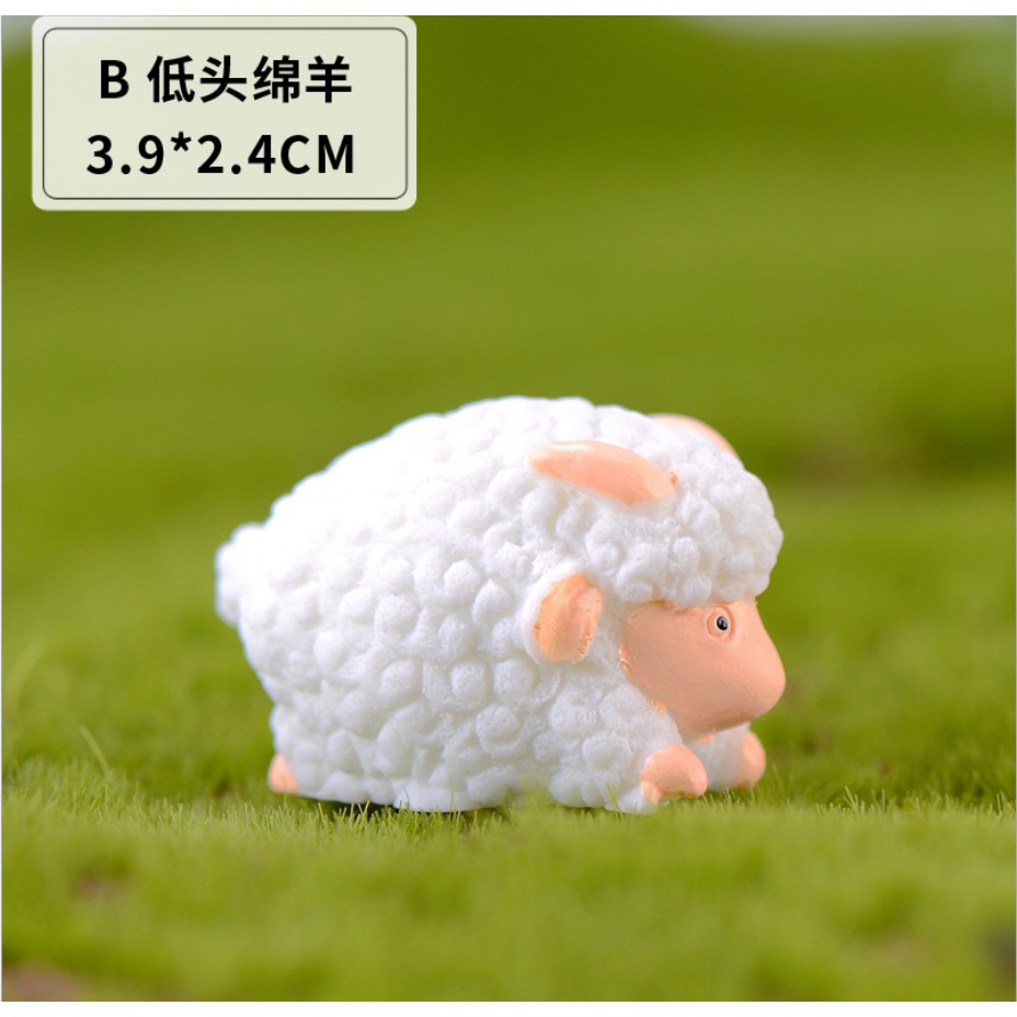 Combo 02 mô hình đôi cừu bông size lớn trang trí tiểu cảnh, bonsai