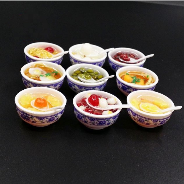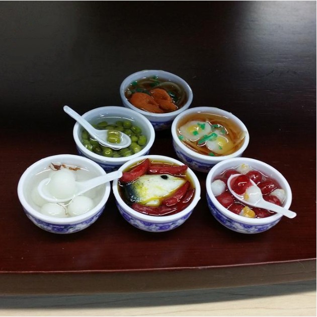 #bonsai #miniature #DIY #chè #cháoMô hình gồm 09 bát chè đậu xanh, đậu đỏ, vừng mè thích hợp trang trí tiểu cảnh, nhà búp bê, đồ #re-ment.