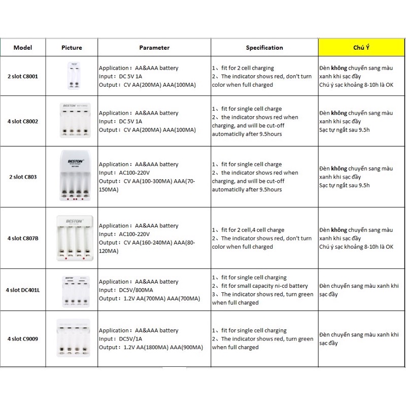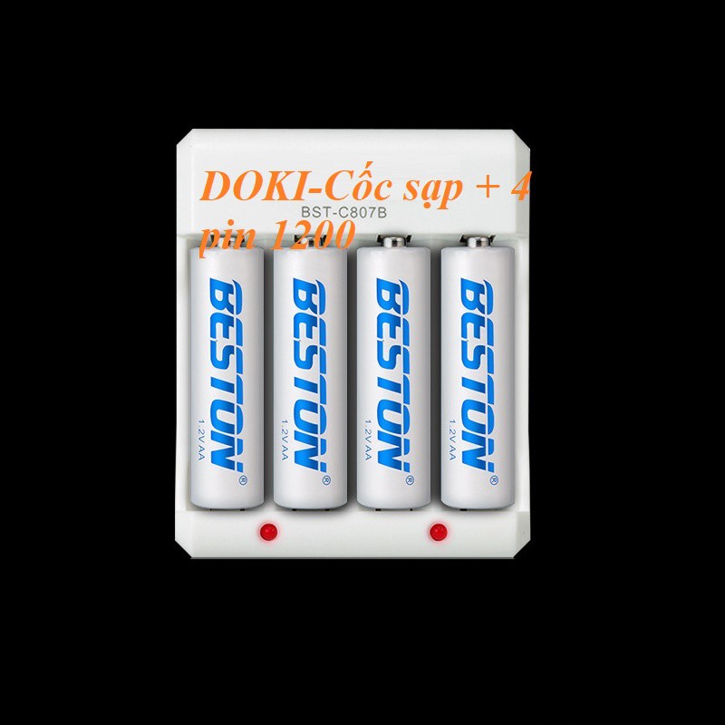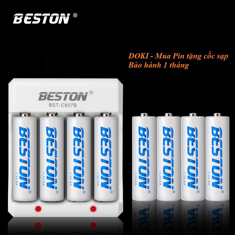 - Pin sạc AA (pin tiểu) dung lượng 1200mAh, pin AAA (pin đũa) dung lượng 1300mAh do hãng BESTON sản xuất sẽ được sạc đầy trong vòng 7h-8h.