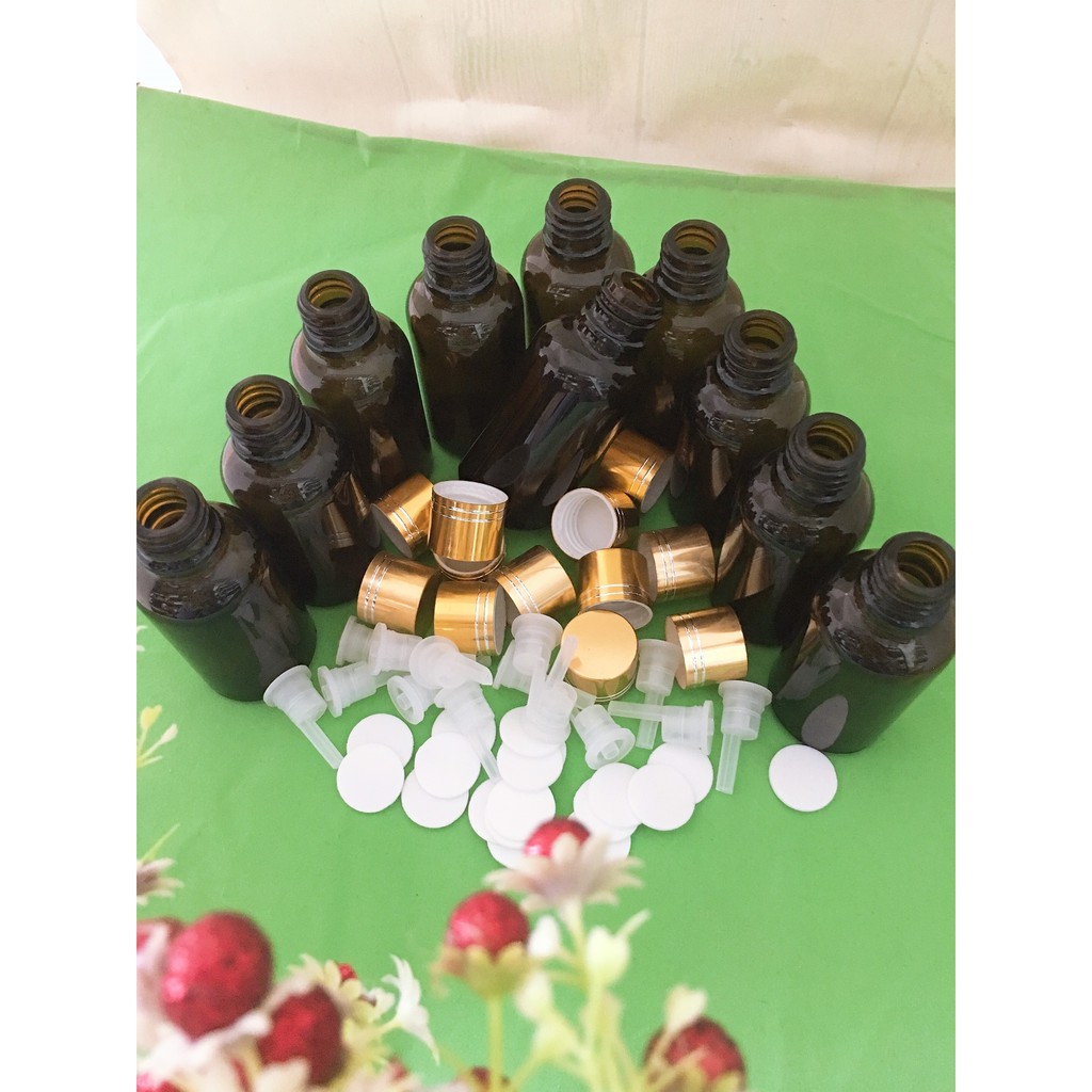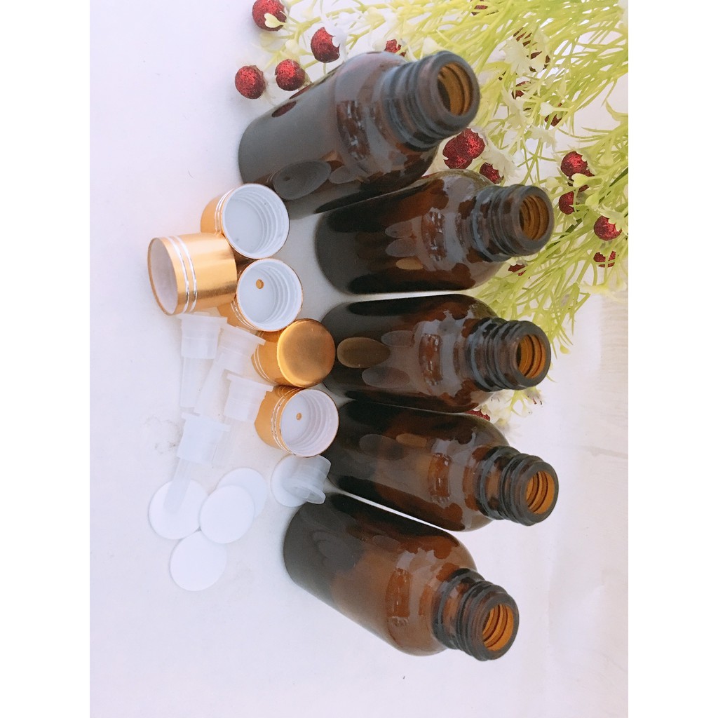 Combo 05 lọ đựng tinh dầu nâu nắp vàng 30ml