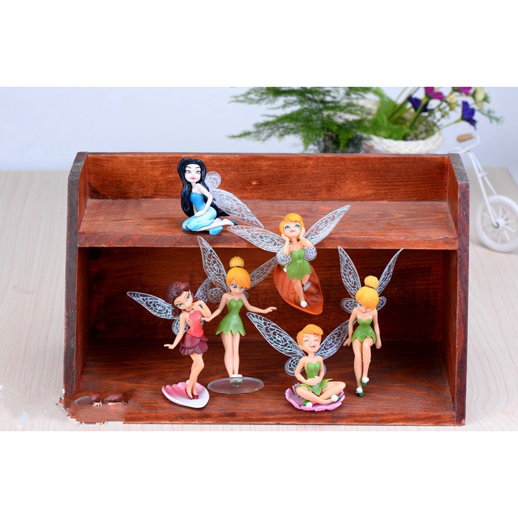 Combo 06 mô hình tiên hoa Tinker Bell cao 10cm trang trí tiểu cảnh, terrarium, móc chìa khóa, DIY