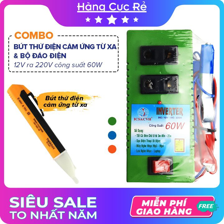Thiết Bị Điện Gia Dụng > Khác || Combo 1 Bộ đảo điện ắc quy 12V ra 220V công suất 60W + 1 Bút thử điện cảm ứng từ xa an toàn - Shop Hàng Cực RẻCòn hàng