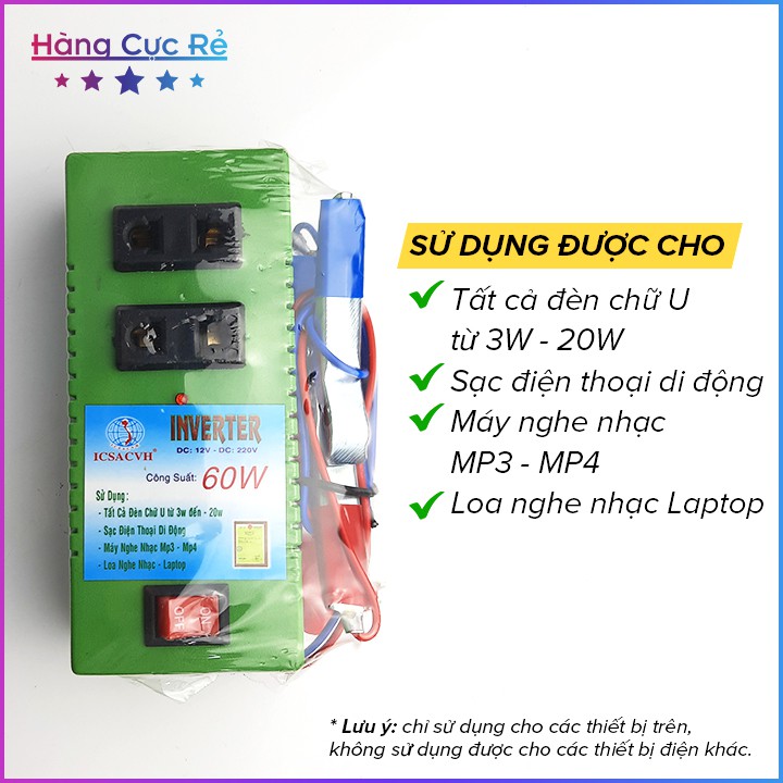 ✔️ Bộ đảo điện 12V ra 220V công suất 60W - Shop Hàng Cực Rẻ là thiết bị bạn nên cân nhắc có trong mỗi lần đi dã ngoại du lịch hoặc thêm vào bộ điện dự phòng tại nhà.