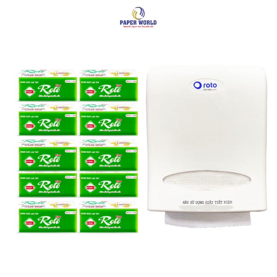Combo 1 hộp đựng giấy lau tay Roto RT8038A màu trắng gắn tường & 10 gói khăn giấy lau tay RTE20-1 | Thế Giới Giấy