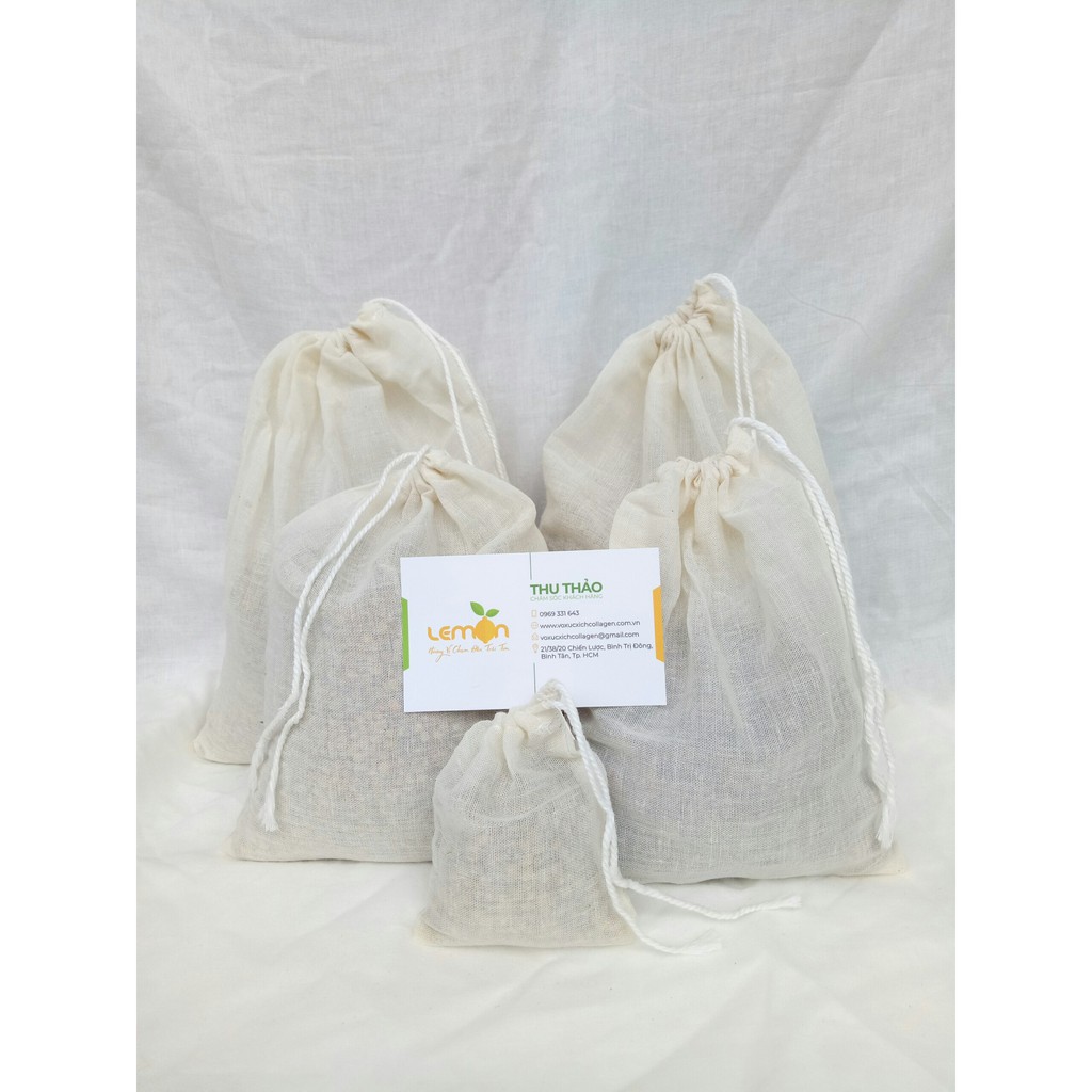 TÚI LỌC TRÀ/ TÚI LỌC GIA VỊ - 100% VẢI COTTON CÓ DÂY RÚT* Lemon chụp hình thực tế của của túi lọc, bạn zoom kỹ để xem chất lượng vải