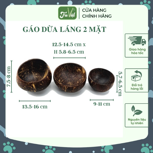 Bát gáo dừa mỹ nghệ được làm từ gáo dừa khô tự nhiên. Sau khi chọn được gáo sẽ thực hiện gia công. Qua các công đoạn: chà nhám, đánh bóng, tạo hình để cho ra những sản phẩm đẹp mắt. Bát gáo dừa rất thân thiện với môi trường và an toàn cho người sử dụng.Kích thước