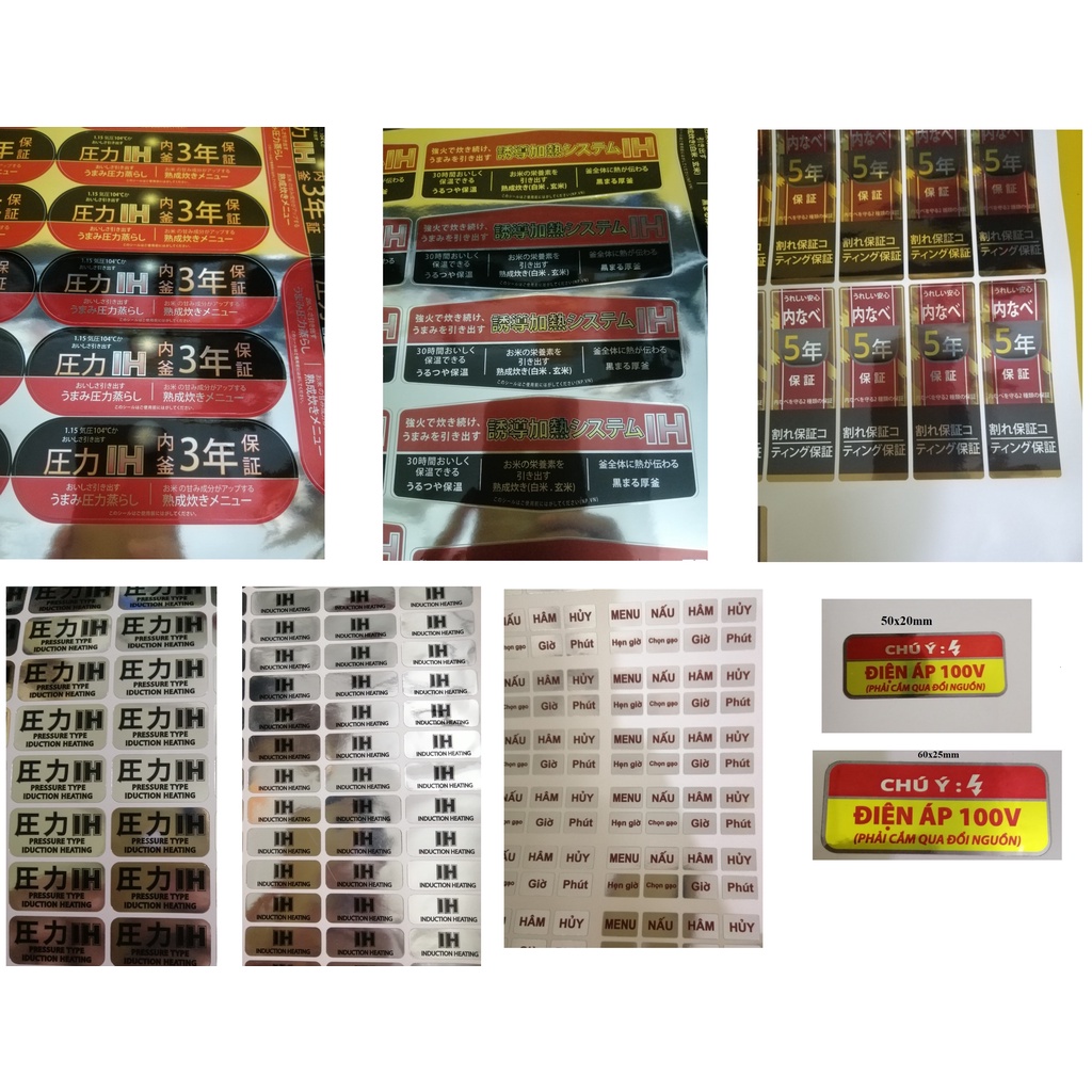 Combo 10 Bộ Tem trang trí cho nồi cơm nội địa Nhật- Chất liệu: Decal xi bạc bóng --> chống nước, đẹp mắt, tạo vẻ đẹp cho sản phẩm khi dán lên