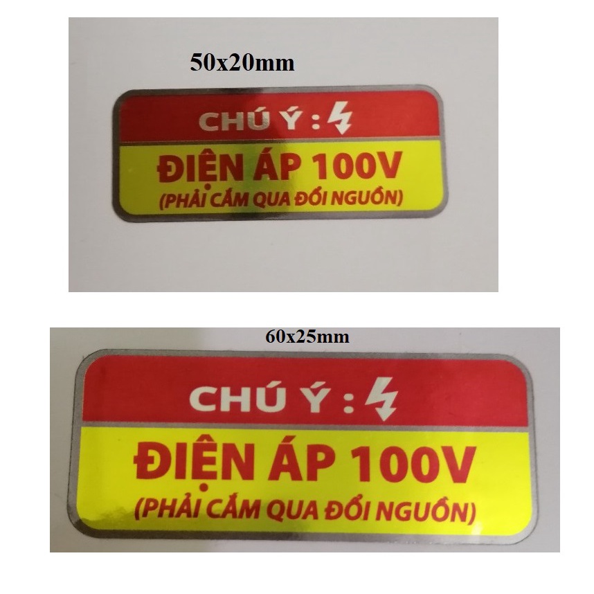 * Tem cảnh báo điện 100V - kích thước: 50x20mm