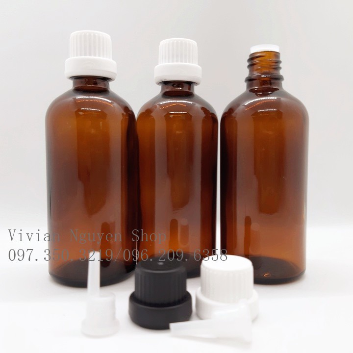 Chai lọ đựng tinh dầu 100ml, màu nâu, cổ có nút nhỏ giọt, nắp đen/ nắp trắng *** HÀNG CÓ SẴN• Xuất xứ: Trung Quốc