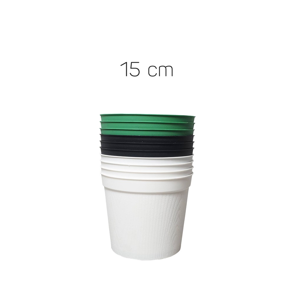 Combo 10 chậu nhựa vân gỗ đường kính 15cm và 18cm