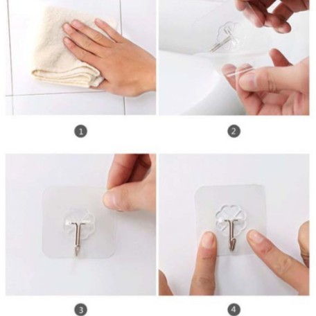 Hướng dẫn sử dụng : Lau sạch bề mặt trước khi dán, sau khi dán để nghỉ 15 phút rồi mới bắt đầu treo đồ.