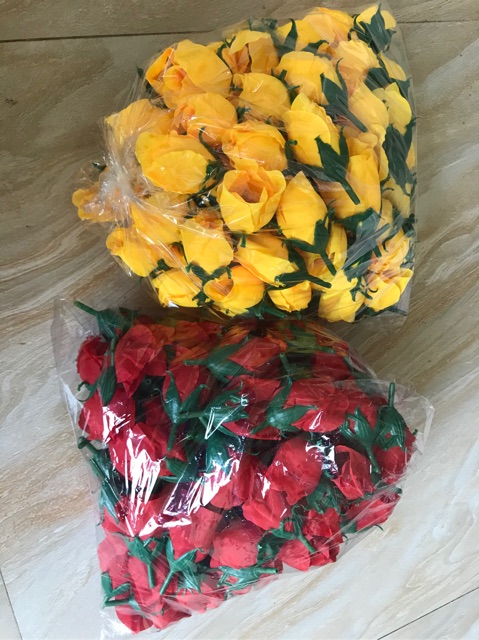 Combo 10 đầu bông hoa hồng nụ - Hoa vải lụa
