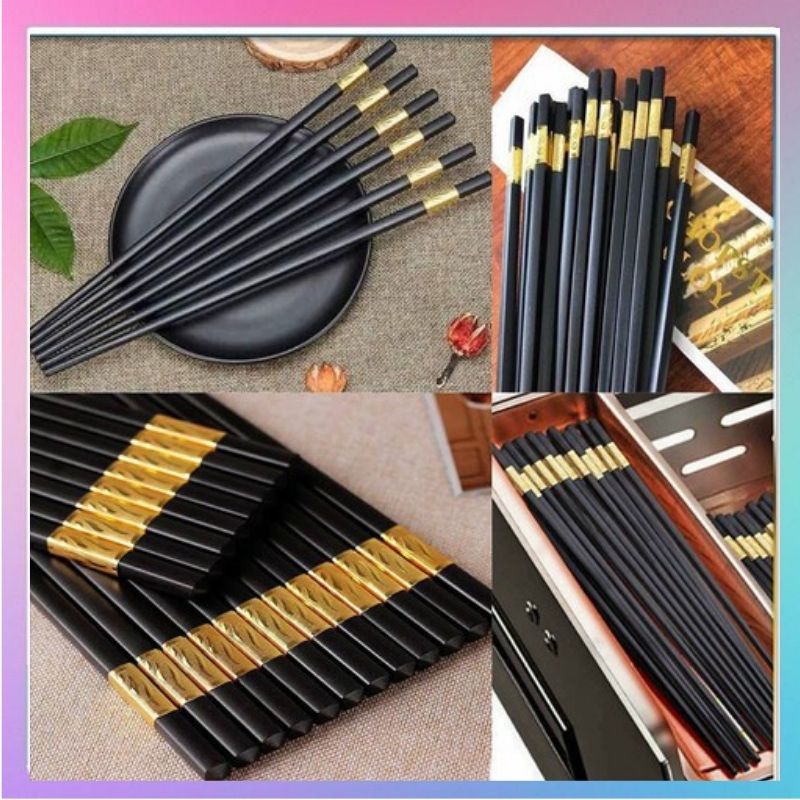 Combo 10 Đôi Đũa Ăn Cơm Đẹp Cao Cấp Hợp Kim Khảm Vàng Chống Mốc Chống Trơn