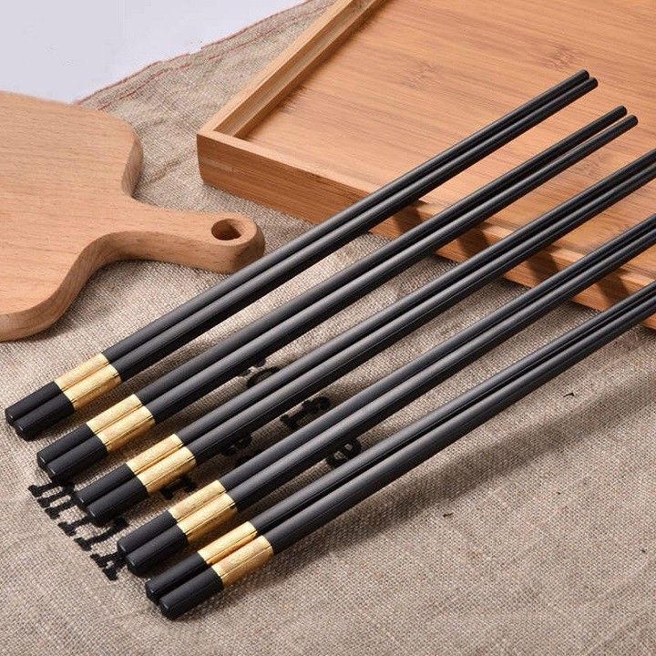 Nhà cửa & Đời sống > Bộ đồ bàn ăn > Bộ dao kéo || Combo 10 đôi đũa hợp kim bọc đầu màu vàngCòn hàng