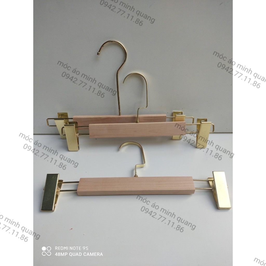 combo 10 móc kẹp quần người lớn bằng gỗ mộc, kẹp gỗ mộc người lớn đầu kẹp mạ vàng,phụ kiện cho shop thời trang