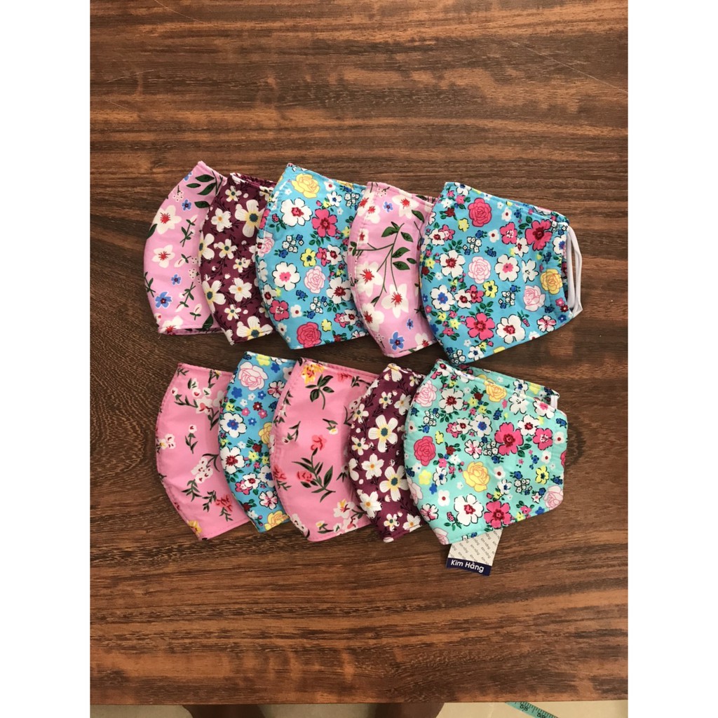 Combo 10 khẩu trang vải bông , 2 mặt vải cotton giống nhau , thương hiệu Kim Hằng ,có 2 hình bông lựa chọn ,Ngẫu Nhiên